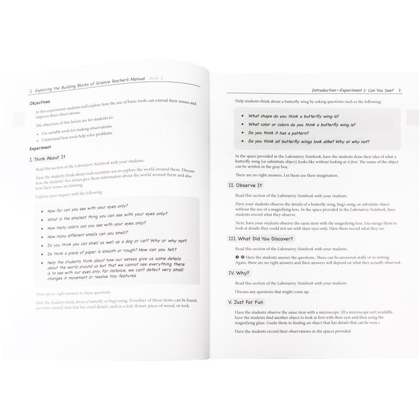• View Building Blocks of Science Book 2 Sample. Sample set includes 3 chapters each of the student text, teacher’s manual, and laboratory workbook, plus the corresponding chapters for the lesson plan, study notebook, quiz question, and graphics package.