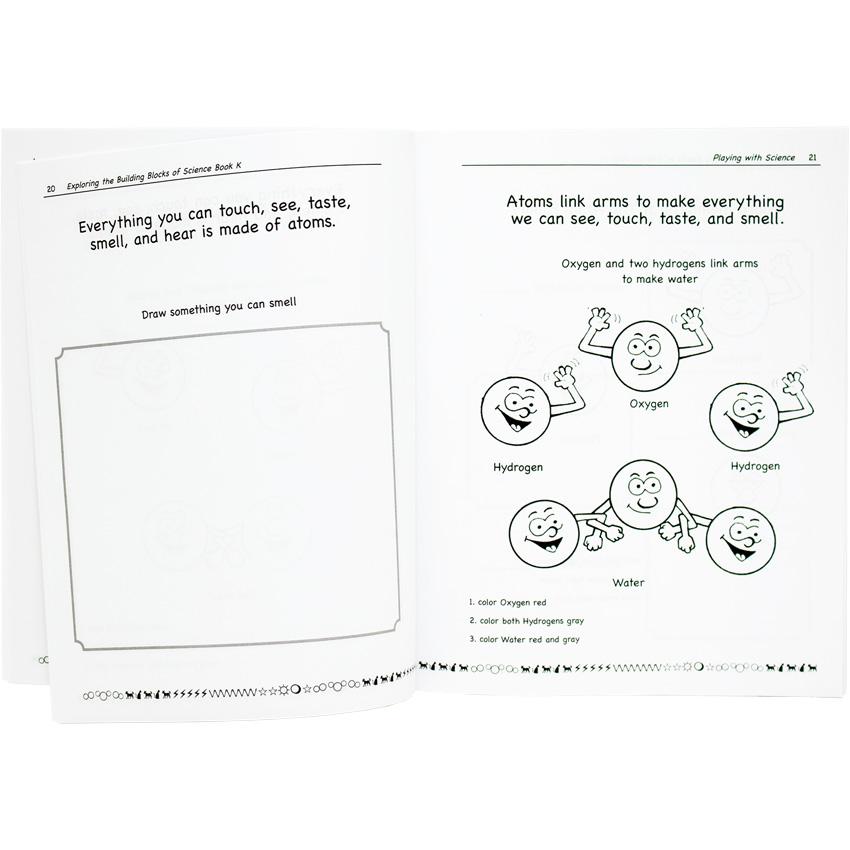 Scientific concepts and terminology are presented clearly and in a manner that’s easy for kids to understand. The illustrations that clarify a concept, like atoms and molecules, are easy to understand and remember. Book K even includes simple experiments, observations, and outdoor activities for the five core science subjects. What a low-fuss way for your child to begin learning basic science concepts!