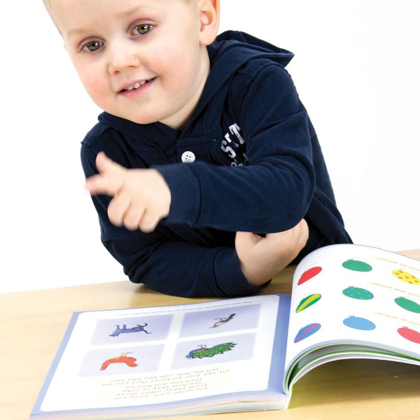 ”Activities are brightly colored, organized, and sequenced in small sections that are perfect for young minds. Preschoolers aren’t designed to sit still and do written work, and with this book they aren’t expected to.”