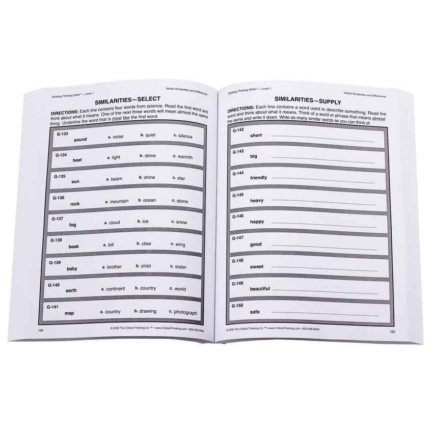 These thinking skills books are among our favorites because of their tremendous scope. They develop four basic analytical skills (similarities/differences, sequences, classification, and analogies) through both figural and verbal problems.