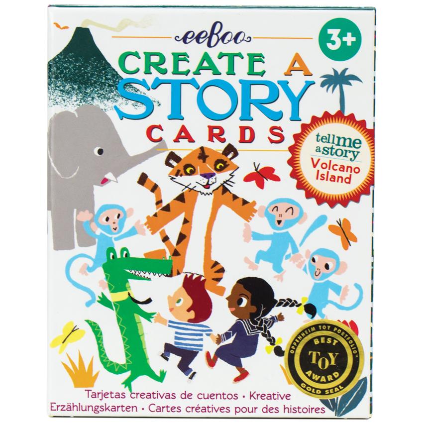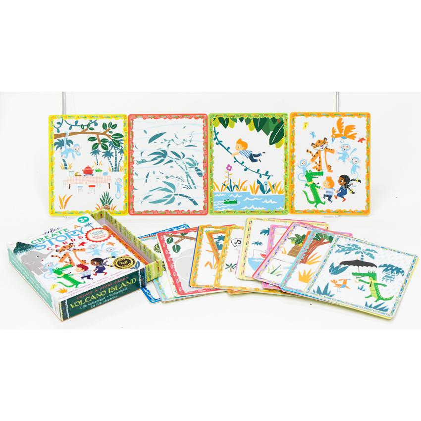The set of 40 cards features beautifully-illustrated and intriguing images - the necessary props to launch your stories. The theme of Create a Story: Volcano Island lends itself to stories of wild animals, exotic plants, and brave (or maybe reckless) children, depending on the mood of the storyteller. Your preschooler will be looking to you to model stories that have a beginning, middle, and end. We like starting each story with "Once Upon a time" because that signals to our children that what follows need not be true.