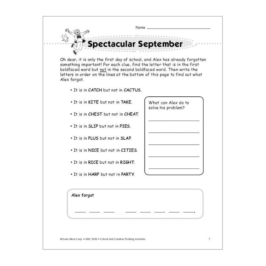 Critical & Creative Thinking Activities' forty-six theme-based units will give your child lots of practice thinking in a variety of ways. From brainteasers and logic puzzles to mazes, Venn diagrams, and secret codes, Critical & Creative Thinking Activities has a wealth of mind-boggling activities that your child will enjoy.