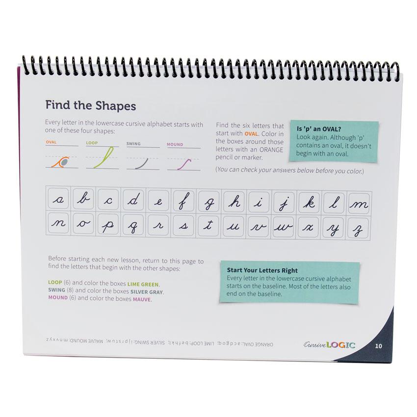 ”CursiveLogic is made to be a faster way to learn cursive because rather than teaching the alphabet letter by letter as in most cursive programs, CursiveLogic's method focuses on four basic letter shapes - oval, loop, swing and mound.”