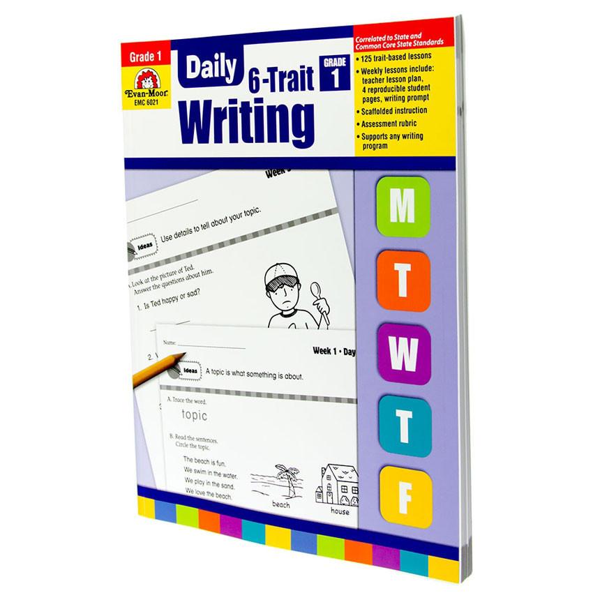 The six traits or characteristics that shape quality writing are content; organization; word choice; sentence fluency; voice; and conventions, which include grammar, spelling, and mechanics. It may sound ominous, but Daily 6-Trait Writing has made it effortless.