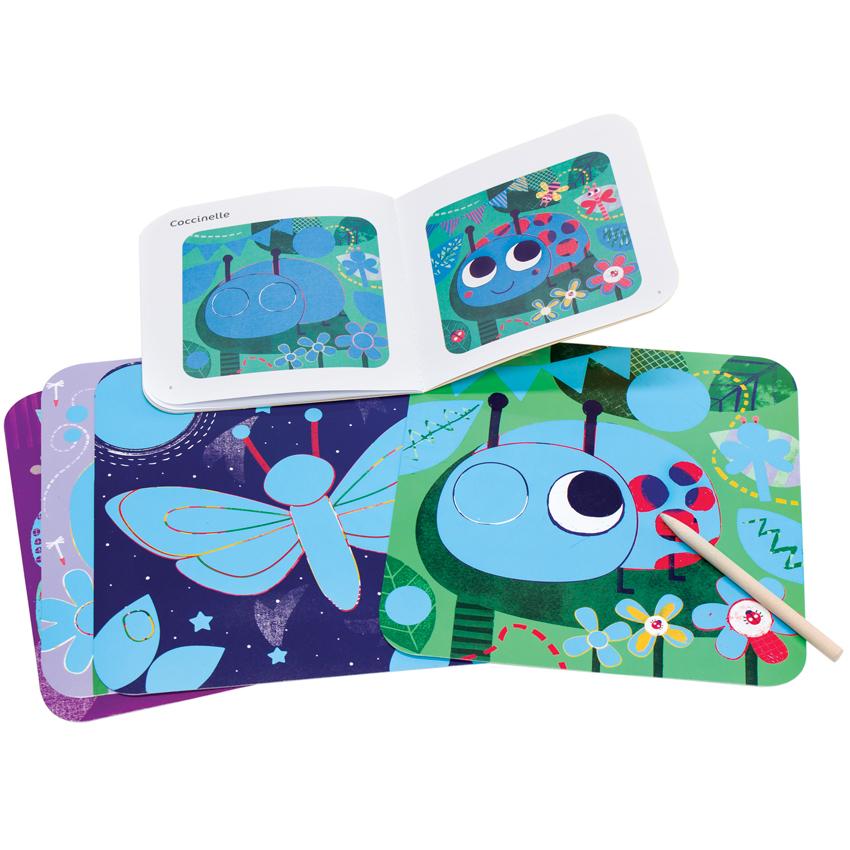 Scratch art is a type of engraving where an artist scratches through dark ink to uncover a colored layer beneath. Now French company Djeco has taken scratch art to a whole new level with these original display-worthy designs. Follow the directions and embellish parts of the creative scratch art boards with simple zentangle-like patterns, and in other places, larger areas of the boards are scratched off to reveal hidden surprises.