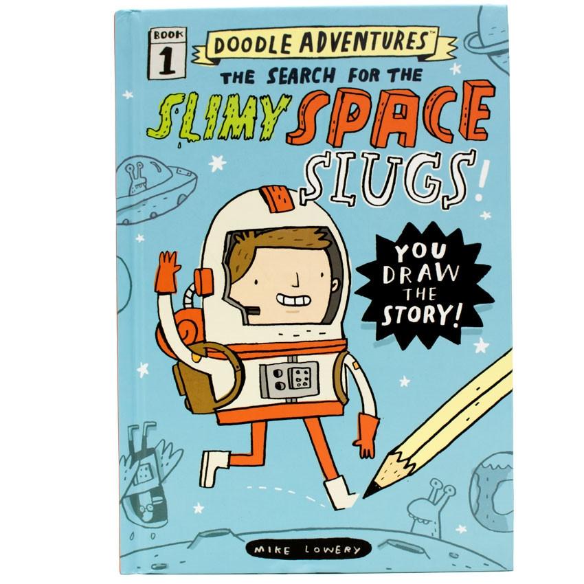 Join Carl, who is not only a duck, but also a member of a super-secret international group of explorers on a journey in search of a very important stolen artifact. This delightful space-themed fantasy has your child draw himself into the story and then, following prompts, adding more illustrations and doodles as he locates the object, beats the bad guys, and get his hero home safely. And by the end of the book your child will have co-illustrated a hilarious book to share with family and friends. Doodle Adventures: The Search for the Slimy Space Slugs is a sturdy hardback book with beautiful cream paper—perfect for doodling. Much more than a simple doodle book, Doodle Adventures: The Search for the Slimy Space Slugs is a reading book with a quirky storyline. The completed book will make a great keepsake.