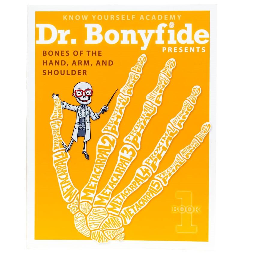 In the colorful Dr. Bonyfide Presents Bones of the Hand, Arm, and Shoulder, your child will learn the names and functions of those bones with puzzles, fun facts, and original comic strips. Plus a pair of X-ray vision (3D) glasses will let your child investigate the bones on special pages. Write-in quizzes and a range of hands-on activities will help you as a teaching parent to assess his progress. A Certificate of Completion for diligent learners is at the back of every Dr. Bonyfide Presents.