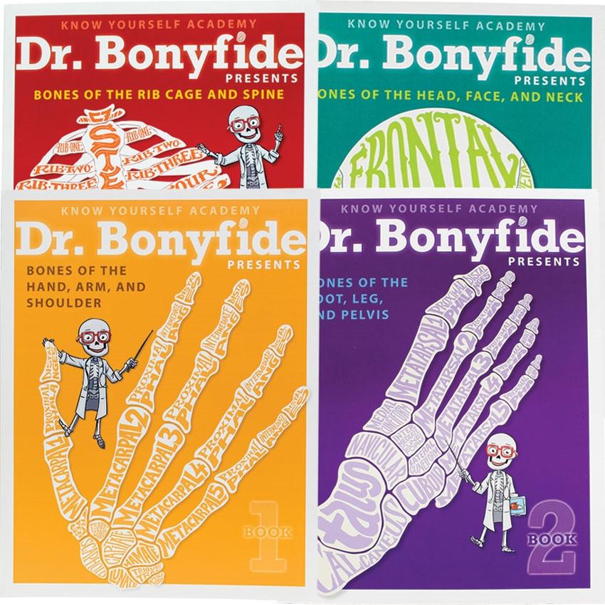 ”The book is written as if a “doctor” is teaching your student and his name is, of course, Dr. Bonyfide. The entire text of the books are written in a rhyming pattern.”