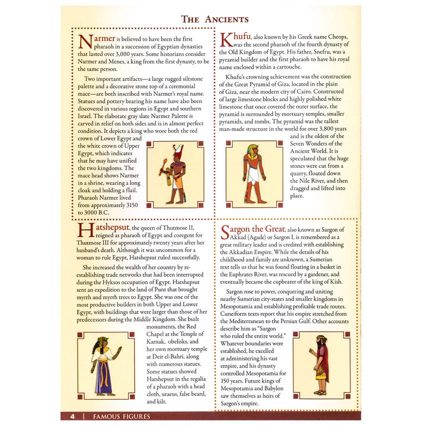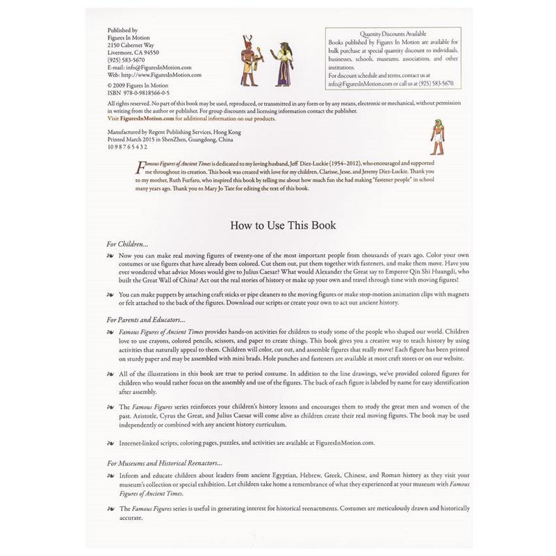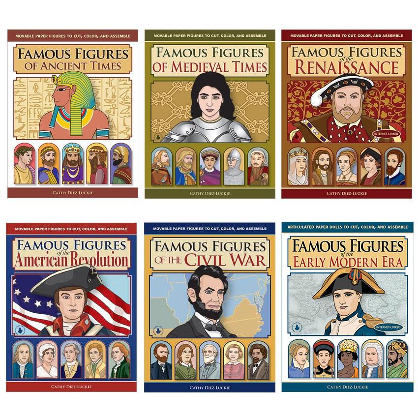Each meticulous Famous Figures illustration is based on authentic paintings or sculptures. Easy-to-assemble characters are printed on heavy cardstock with perforated pages for trouble-free removal. Cut out the pieces, punch holes where directed, attach common fasteners, and your historical figures are ready to take center stage as your child reenacts momentous events in history.