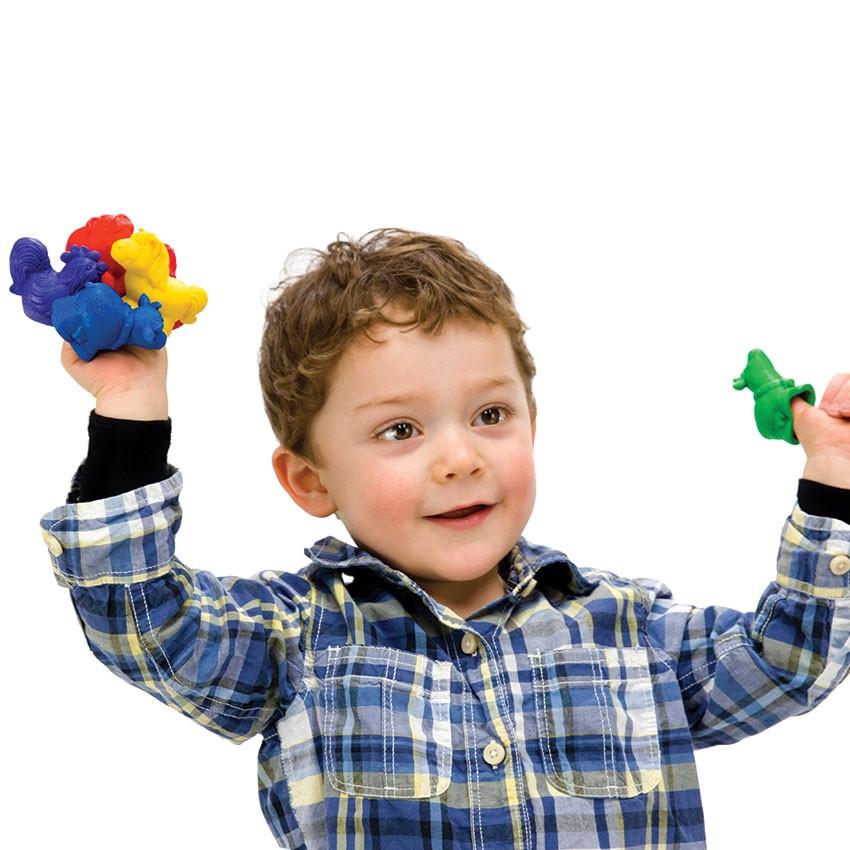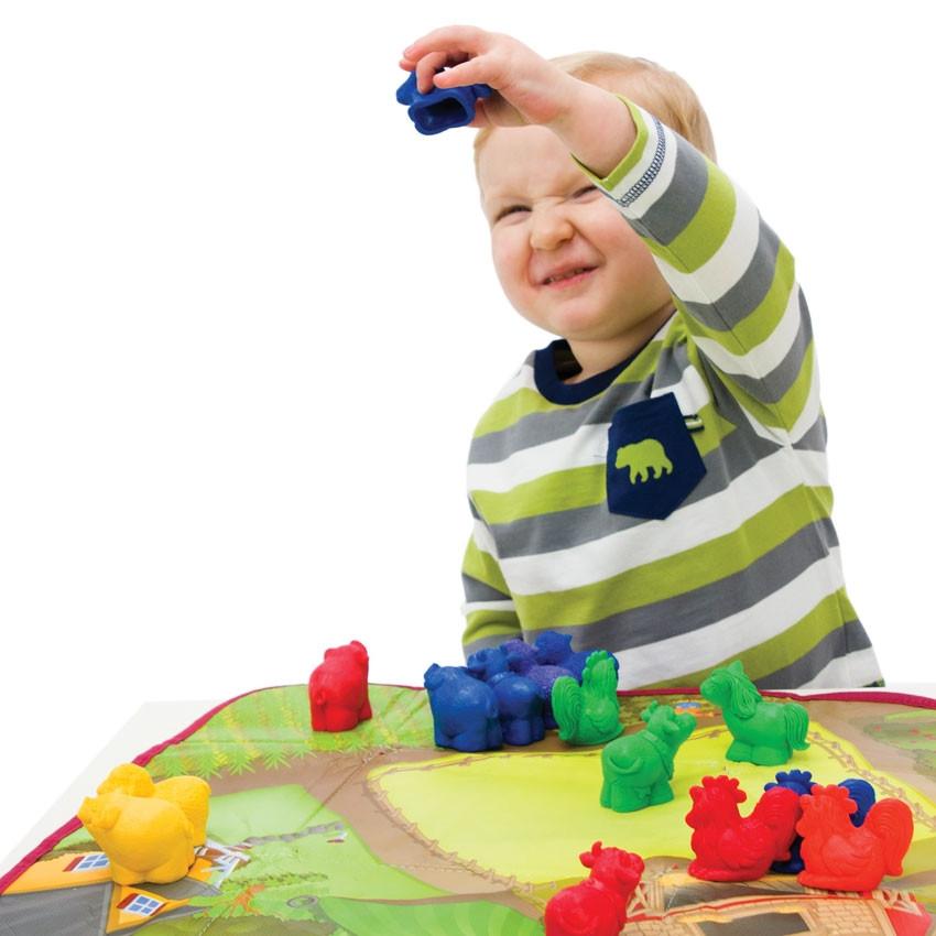 What do you get when you mix a bold, bright farm-themed play mat with 30 vibrant jumbo farm animals? A crazy-smart curriculum for introducing toddlers to the wonders of math and thinking skills! Farmland Math is 36 weeks of straightforward problems to build your toddler’s skills to think math. Concepts spiral gradually so that children do not forget as they go and include grouping by color, counting, and patterns, plus rudimentary addition and subtraction skills. Farmland Math includes a large, durable, wipe-clean foldable farmyard mat, 30 jumbo farm animals, and the 36-week Farmland Math guide.