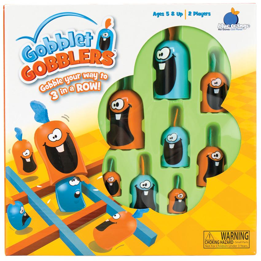 One of the first strategy games to teach children is tic-tac-toe. It is exciting to see their delight when they finally "get it," but it doesn't take long until they experience the disappointment of too many games that end in a draw. Now Gobblet Gobblers incorporates the ease of tic-tac-toe with a twist that virtually eliminates stalemates. In Gobblet Gobblers, you can move any of your pieces that are already in play, add a new piece, or gobble up an opponent's piece.