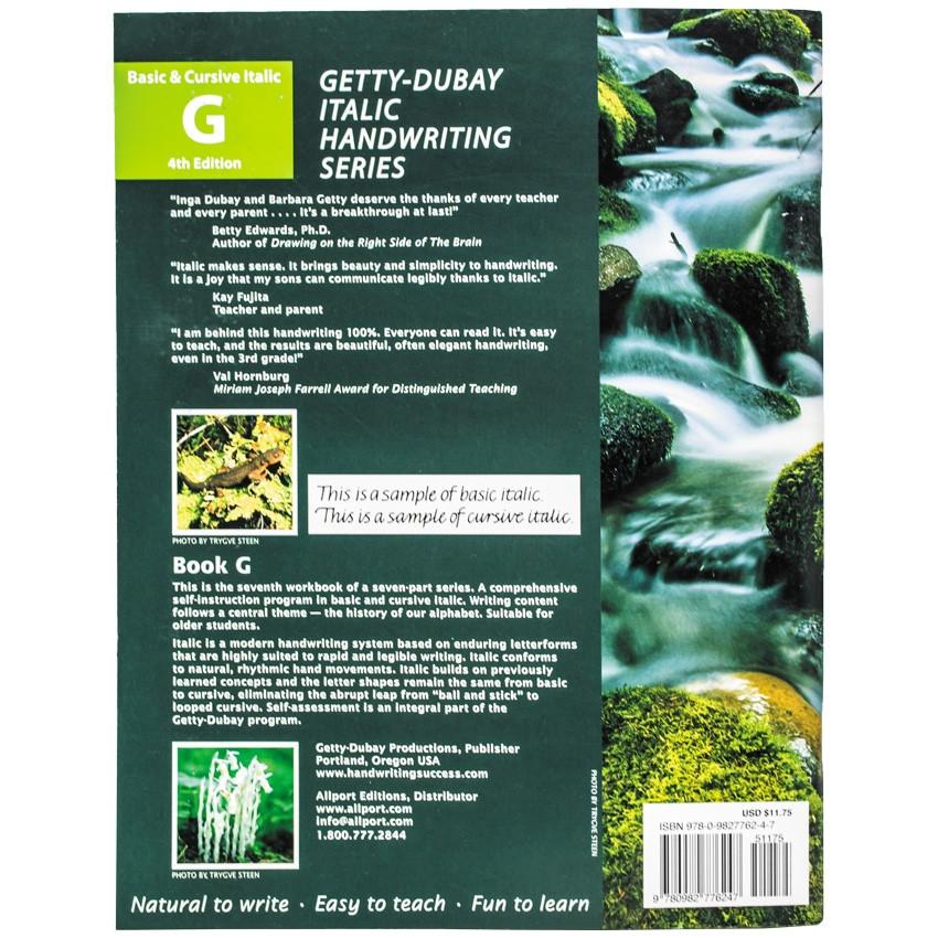 Italic Handwriting Book G Grade 6, the final book in the Italic Series contains basic and cursive writing practice to acquaint the student with the history of writing. Content includes writing materials such as papyrus, parchment, paper and pens as well as eight scripts developed from the Roman Era to the 17th century. Cursive capitals practice shows the historical development of each letter. History of numerals.