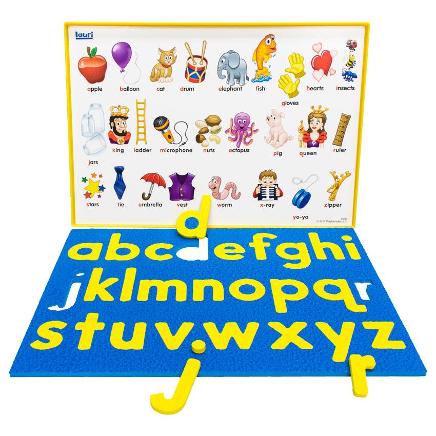 You will not find a better "touch, feel, and fit" alphabet, or a more durable one, for those children who delight in pounding the pieces in. And they all do, don't they? For homeschooling, this puzzle is an essential. 2" tall letters! Includes a sturdy storage tray.