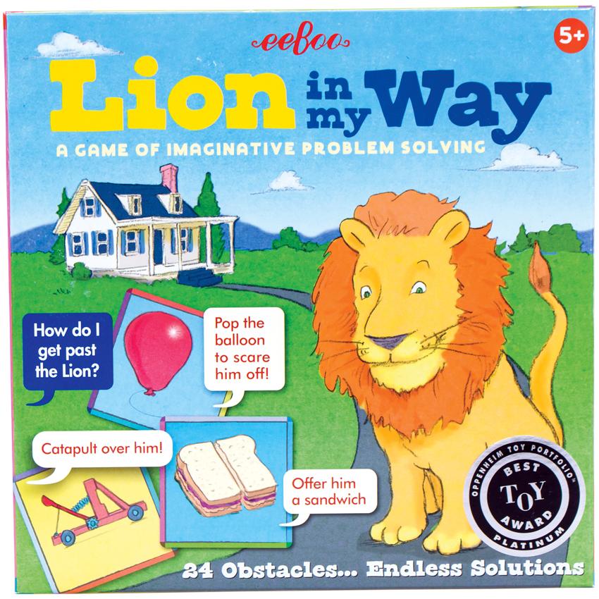 With 25 path cards and 100 tool cards, Lion in My Way is a game that will give your family hours of creative fun. Winner of the Oppenheim Toy Portfolio Platinum Award 2018. For 2-5 players.