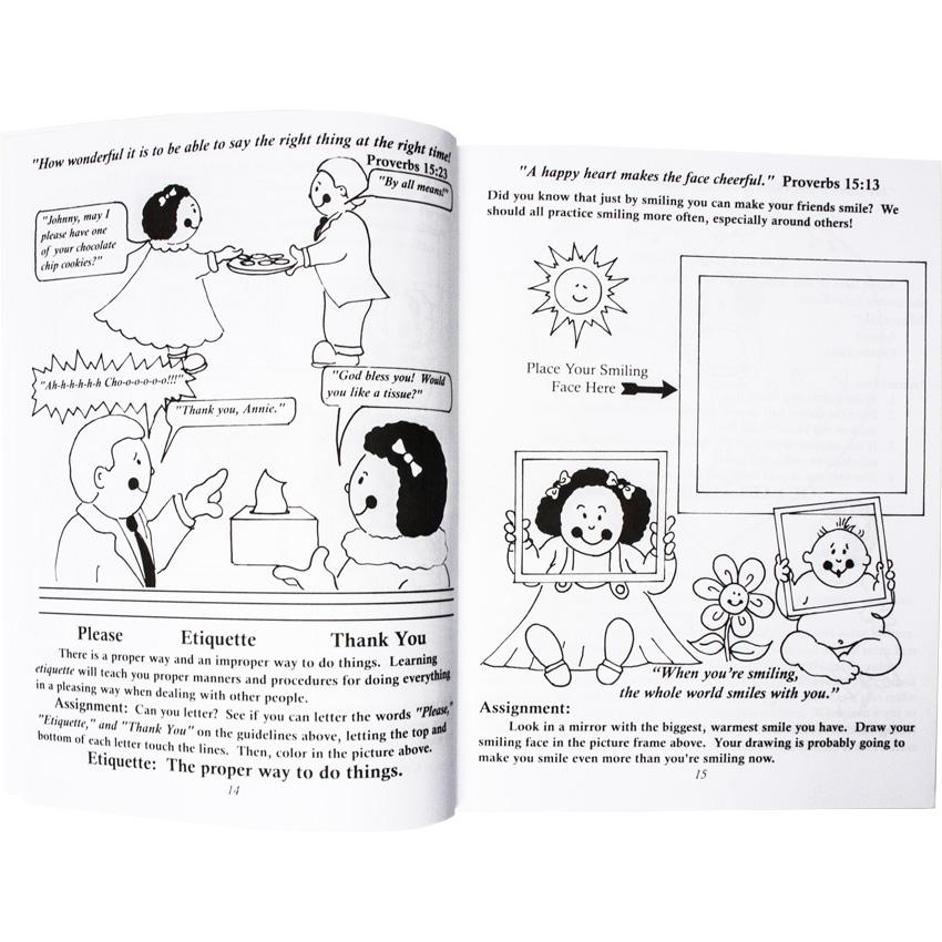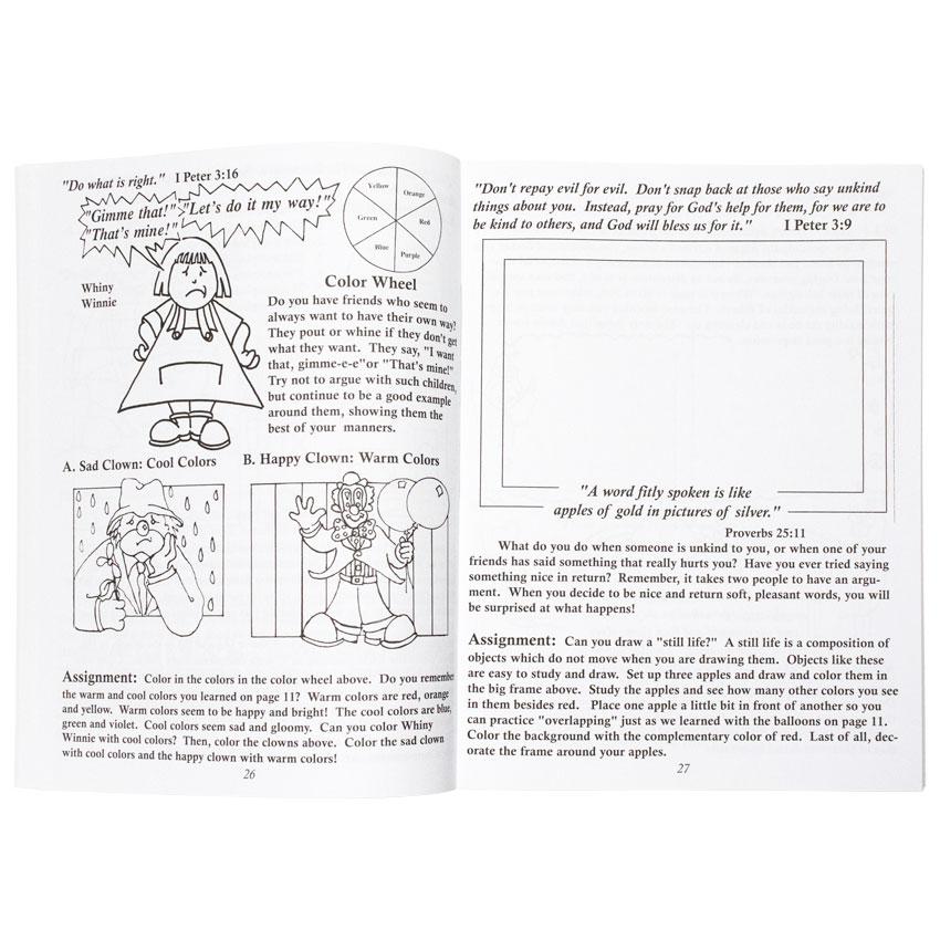 Employing a delightful text, it teaches social graces using generous amounts of Scripture along with simple art assignments. Lessons on dinner etiquette, being a good listener, writing a thank you note, discerning what quality time is and much more are all reinforced with appealing and easy art lessons. I cannot imagine a more memorable or more agreeable way to teach a young child to forsake his own natural desires and look to the needs of others. Ninety pages, recommended by the author for ages 4 - 7, but I think that even an 8- to 10-year-old would enjoy the assignments and remember the lessons.