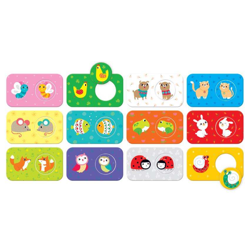 Match the Buddies puzzles will help develop your toddler’s concentration, motor skills, language skills, and logical thinking. The 12 two-piece puzzles feature extra-large pieces packaged into a sturdy, handy box with a practical toddler-friendly handle.