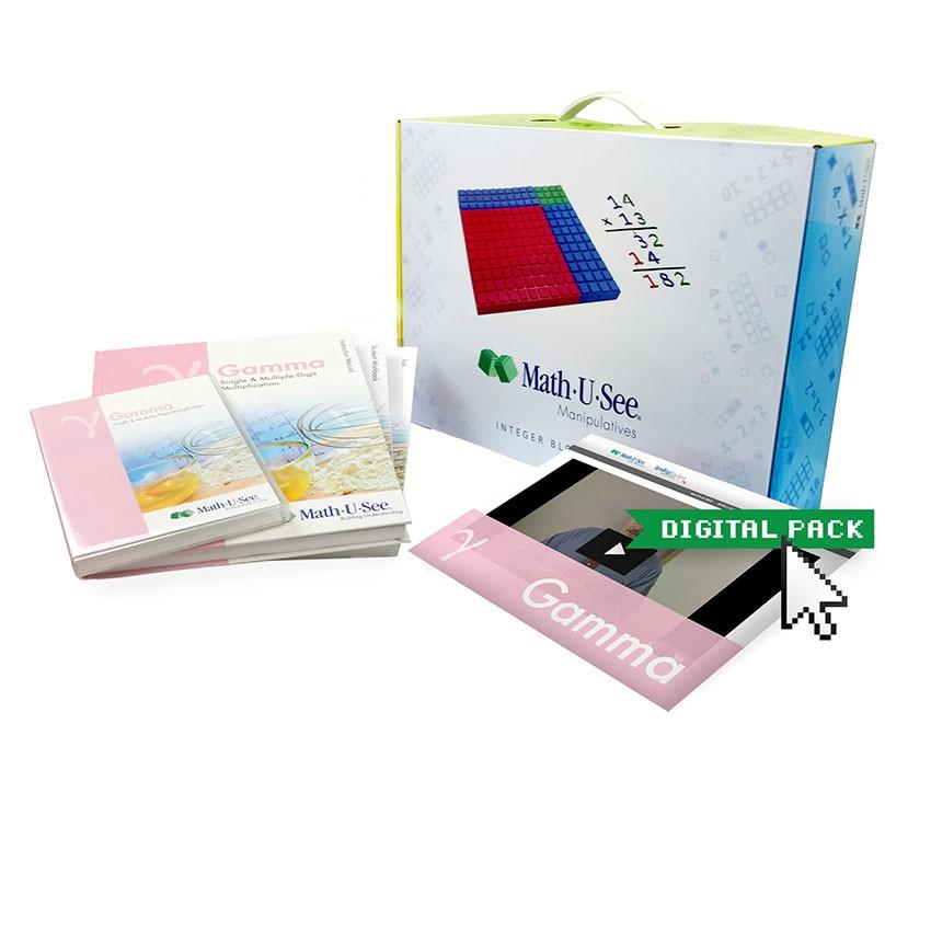 The Gamma Level Up Set is geared toward families who already own the Integer Block Kit, or who are purchasing the Integer Block Kit as part of another Math-U-See level. If you are looking for a complete set, minus the massive manipulative set, this is what you want. In addition to the Instruction Pack and Student Pack, the Gamma Level Up Set also includes the Gamma Digital Pack with access to streaming instruction videos, instructional PDFs, and all the other online resources for the Gamma level in one convenient location.