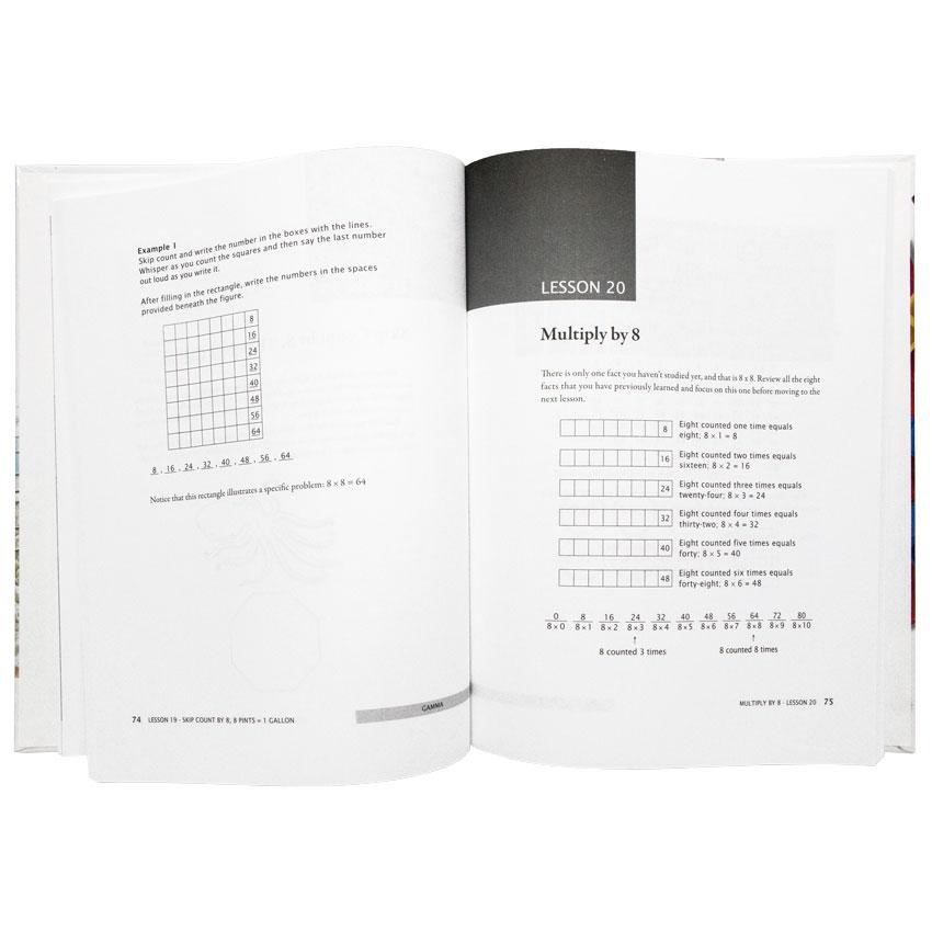 There are seven books for elementary grades which can be used in the following order: Primer, Alpha, Beta, Gamma, Delta, Epsilon, and Zeta. These first seven books are followed by Pre-Algebra, Algebra 1, Geometry, Algebra 2, PreCalculus with Trigonometry, and Calculus. Placement tests for the different levels are available here.