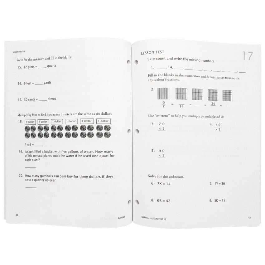 This is the right choice for families who have more than one student in the Gamma level and who need a second workbook, or for families who have previously used Gamma for one student and already own both the Integer Block Kit and the Instruction Pack. The Student pack includes solely the student workbook and the test booklet; the Gamma Digital Pack is not included.