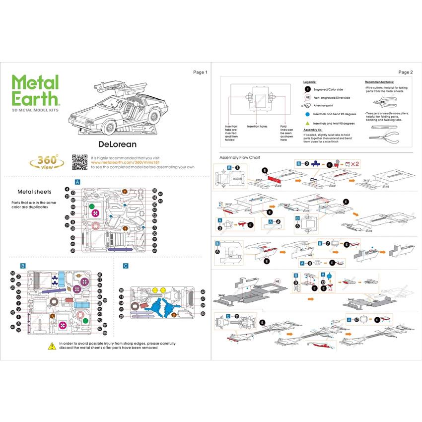 Metal Earth is a collection of intricately designed model building kits. Each kit consists of remarkably detailed laser etching cut onto one or more four-inch square sheets of thin metal. Simply snap out the pieces, bend the tabs to attach them together and create highly-detailed replicas of vehicles and architecture that fit in the palm of your hand. Striking to look at, especially when placed to catch the light, most Metal Earth models take one to three hours to assemble, and on average measure about three inches long when completed. All can be assembled without any glue, although tweezers or needle nose pliers to bend the tabs will save your child from sore fingers. Because of the tiny size of the components and the complexity of the models, Metal Earth models make ideal gifts for children ten years and older, teens, and even dads and moms!