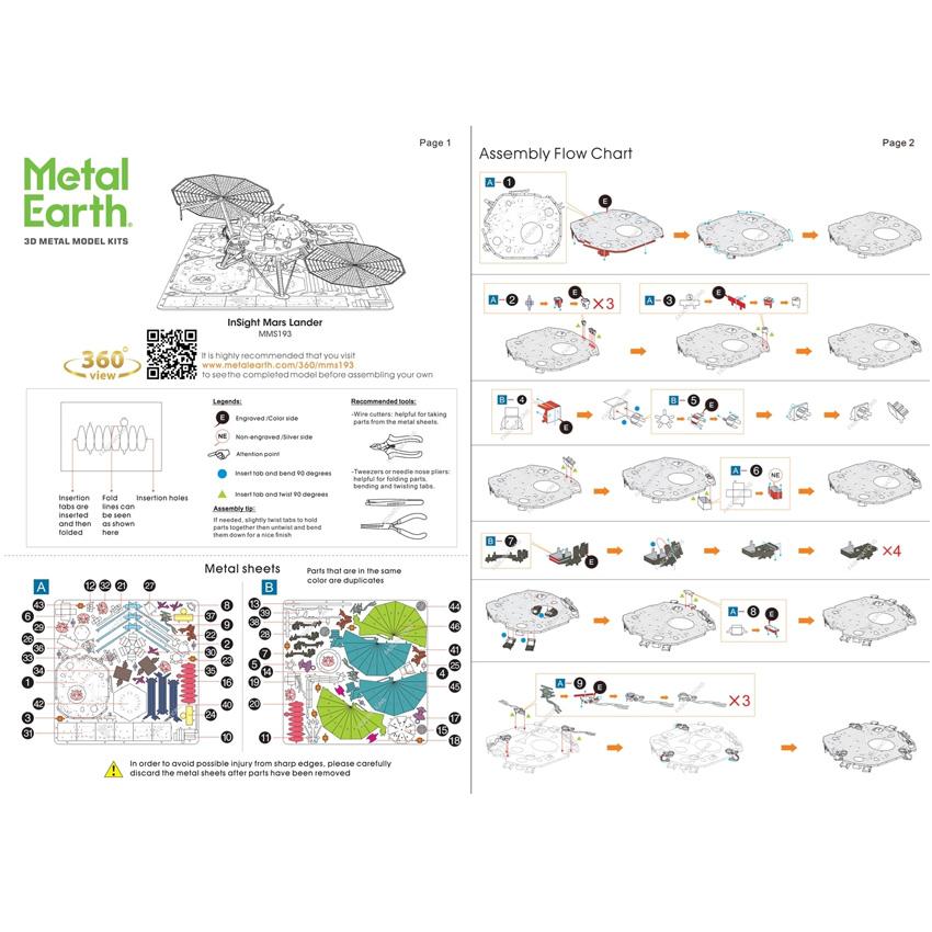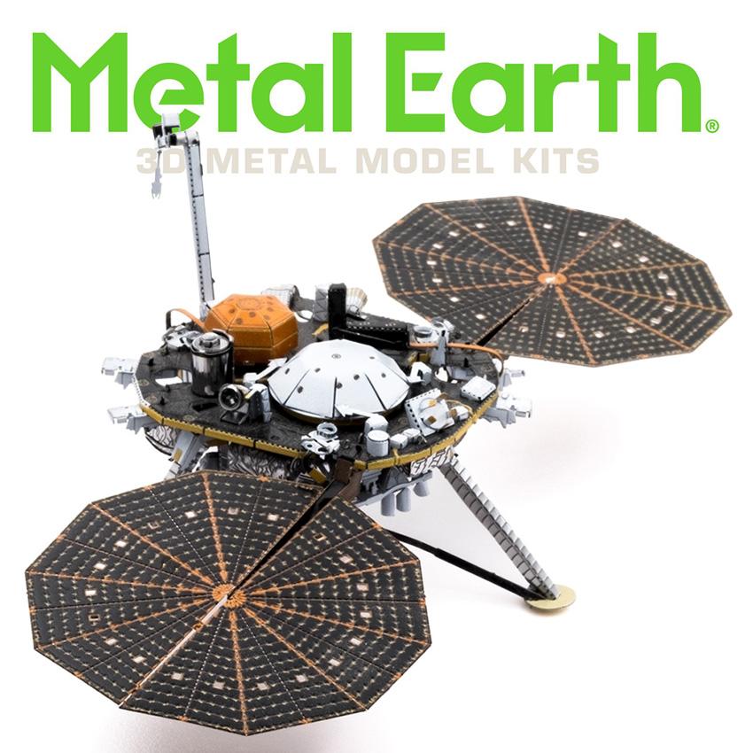 Metal Earth is a collection of intricately designed model building kits. Each kit consists of remarkably detailed laser etching cut onto one or more four-inch square sheets of thin metal. Simply snap out the pieces, bend the tabs to attach them together and create highly-detailed replicas of vehicles and architecture that fit in the palm of your hand. Striking to look at, especially when placed to catch the light, most Metal Earth models take one to three hours to assemble, and on average measure about three inches long when completed. All can be assembled without any glue, although tweezers or needle-nose pliers to bend the tabs will save your child from sore fingers. Because of the tiny size of the components and the complexity of the models, Metal Earth models make ideal gifts for children ten years and older, teens, and even dads and moms!