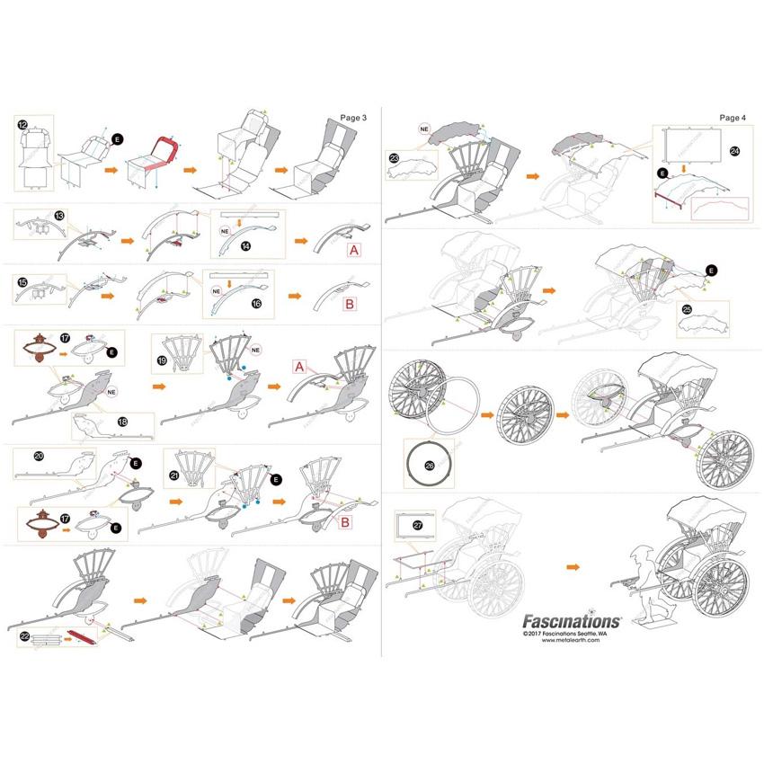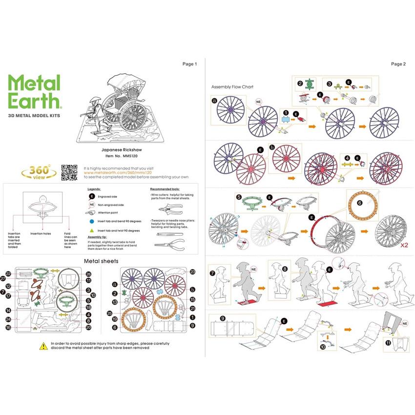 Metal Earth is a collection of intricately-designed model building kits. Each kit consists of remarkably-detailed laser etching cut onto one or more four-inch square sheets of thin metal. Simply snap out the pieces, bend the tabs to attach them together and create highly-detailed replicas of vehicles and architecture that fit in the palm of your hand. Striking to look at, especially when placed to catch the light, most Metal Earth models take one to three hours to assemble, and on average measure about three inches long when completed. All can be assembled without any glue, although tweezers or needle nose pliers to bend the tabs will save your child from sore fingers. Because of the tiny size of the components and the complexity of the models, Metal Earth models make ideal gifts for children ten years and older, teens, and even dads and moms!