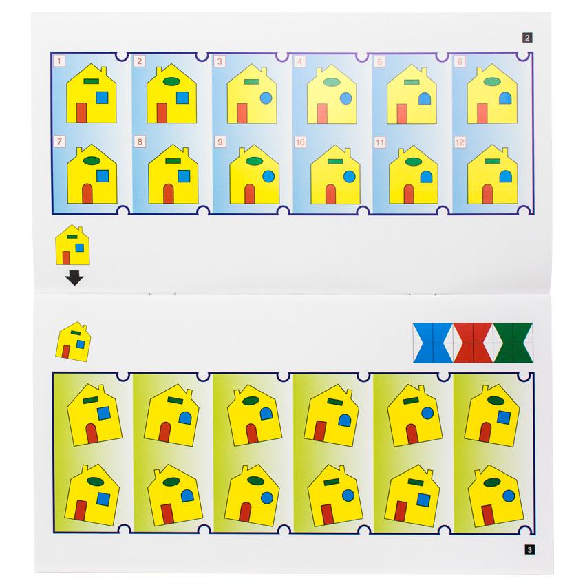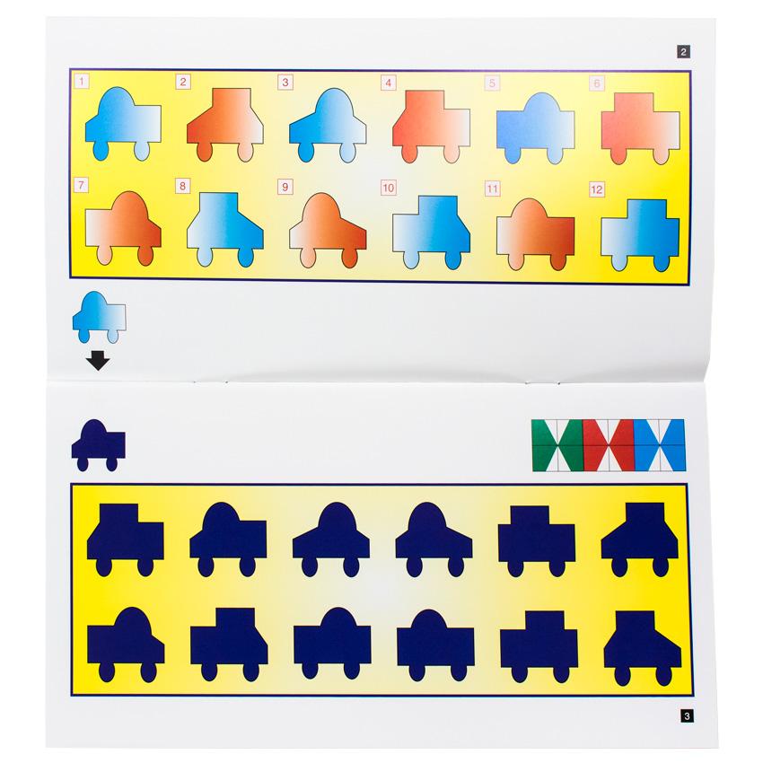 The miniLUK Brain Training series is similar to the Bambino Luk but is designed for an older child. Its controller board has twelve tiles in a high-quality plastic case with a transparent lid. These tiles are numbered from "1" to "12" and the activities are much more challenging. When children finish each exercise, they can check to see if the unique symmetric pattern on the back of the controller matches the one on the page.