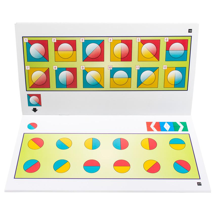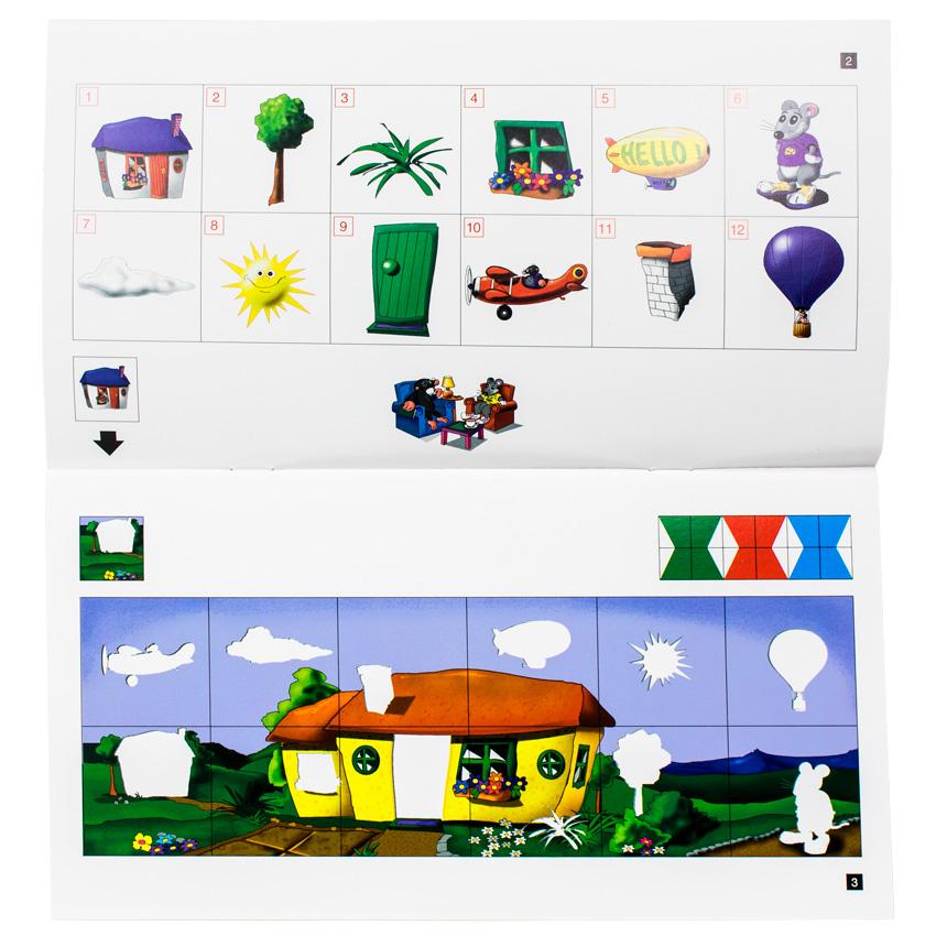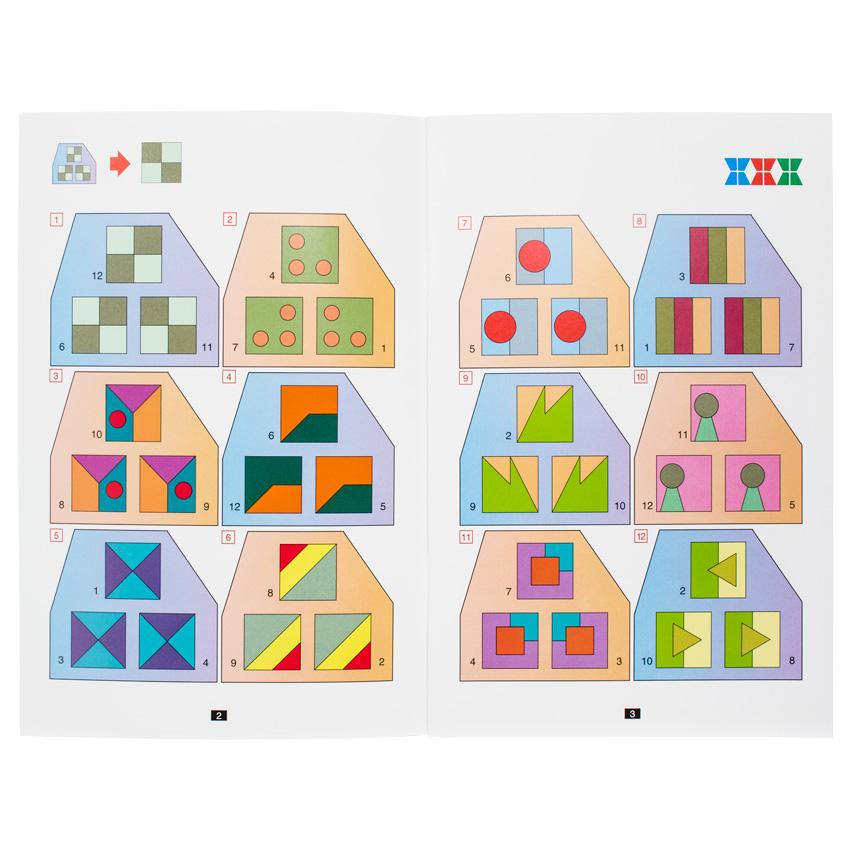 The miniLUK Brain Training series is similar to the bambinoLUK but is designed for an older child. Its controller board has twelve tiles in a high-quality plastic case with a transparent lid. These tiles are numbered from "1" to "12" and the activities are much more challenging. When children finish each exercise, they can check to see if the unique symmetric pattern on the back of the controller matches the one on the page.
