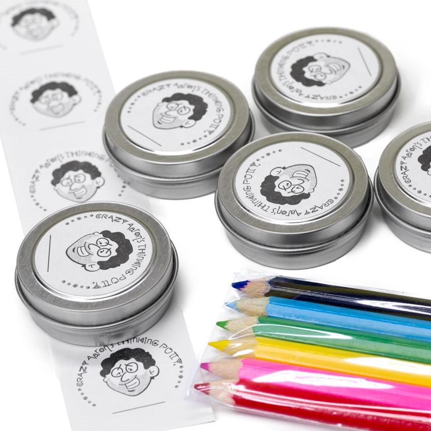 5 small tins hand packed with clear Thinking Putty (twist off the lid to remove!)